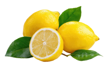 Fresh lemons and leaves, vibrant yellow