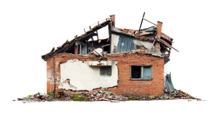 destroyed building after earthquake isolated on white background PNG. AI Generated
