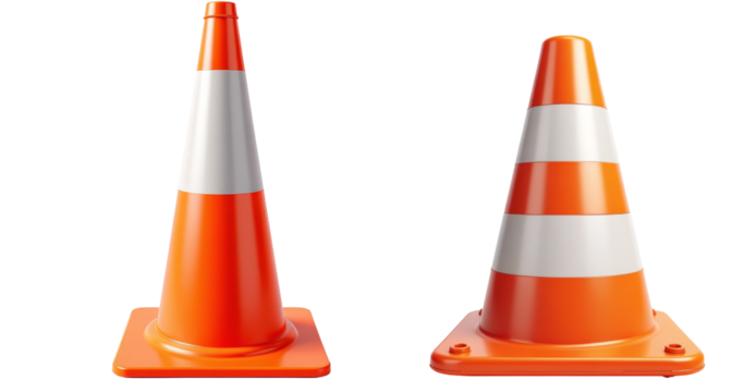 Traffic Cones Isolated on transparent background, isolate for Road Safety and Construction Signage