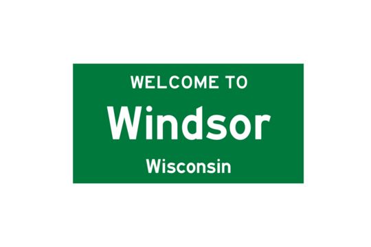 Windsor, Wisconsin, USA. City limit sign on transparent background.
