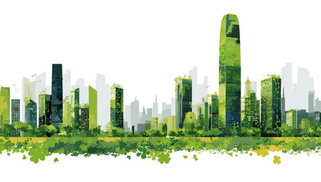 Economic Growth and Market Trends Illustrated with an Oil Rig, Cityscape, and Upward Graph