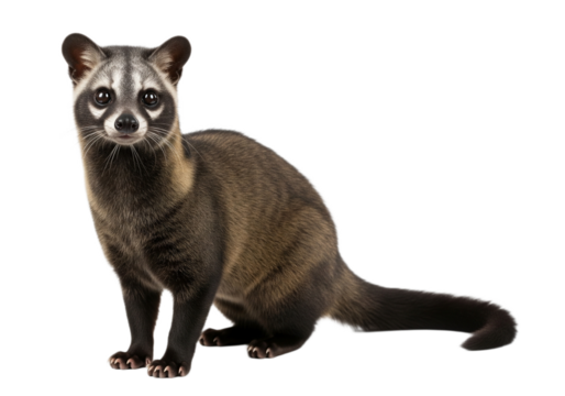 Elegant African civet standing with bright lighting showcasing natural features and wildlife detail isolated on transparent background PNG