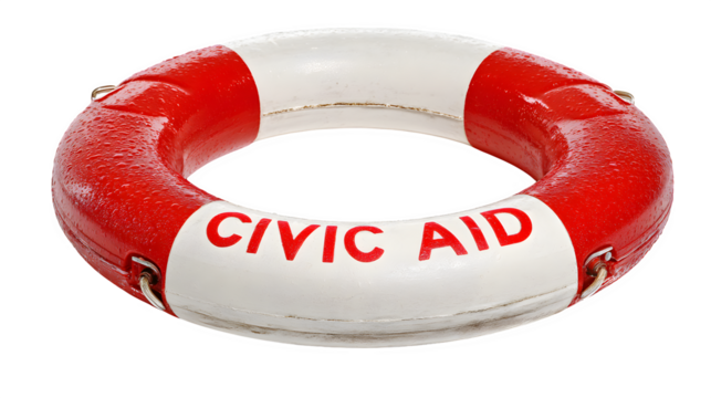 A lifebuoy ring labeled "Civic Aid," floating upright, isolated on Transparent Background