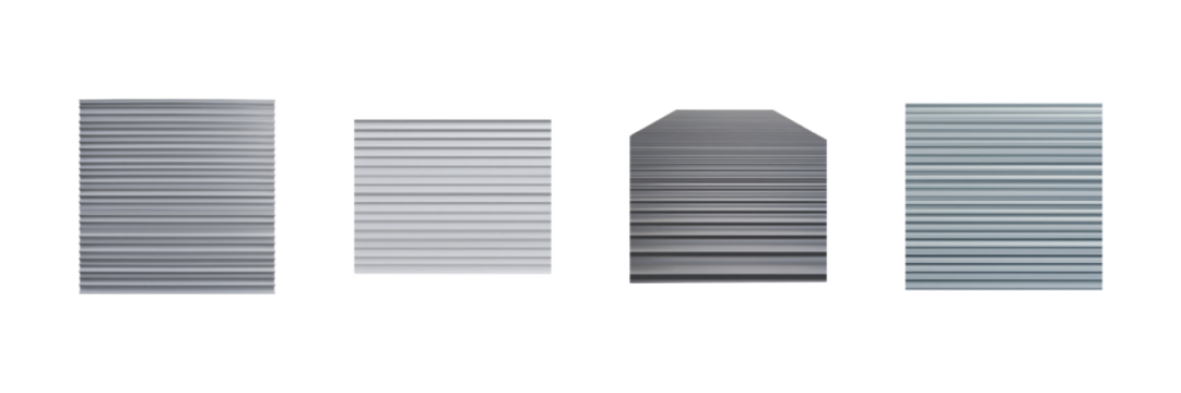 Corrugated Metal Sheet Textures Set. Industrial Roofing And Construction Materials Collection Isolated On Transparent Background