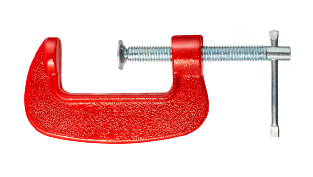 Silver stainless steel clamp tool with threaded screw isolated on a transparent background