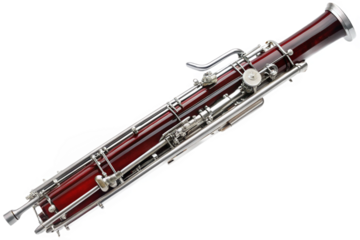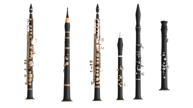 Sleek black clarinet with silver keys and a polished finish isolated on transparent background