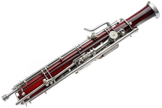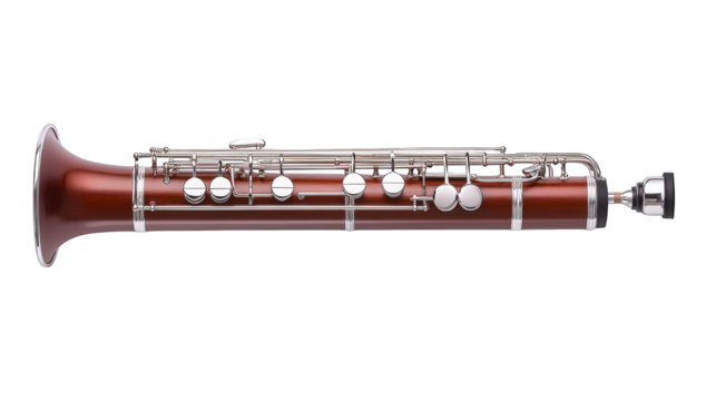 Wooden clarinet with metal mouthpiece isolated on transparent background, perfect for music and instrument concepts