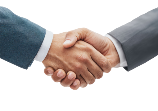 Close-up of two hands clasped in a firm handshake, symbolizing agreement or partnership