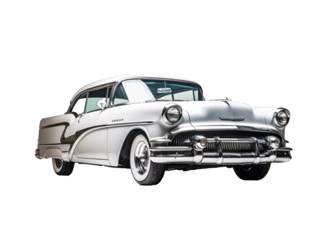 Side profile of a classic muscle car in metallic finish, a timeless symbol of American automotive heritage, studio view, isolated on transparent background.