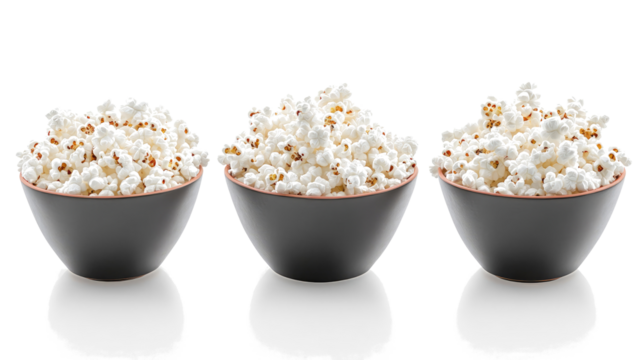 Bowls Filled With Fluffy White Popcorn on a Transparent Background Generative AI