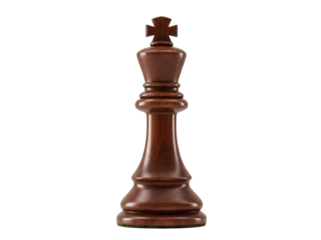 Dark brown wooden chess king isolated PNG on transparent background, strategic game piece for board games and intellectual challenges
