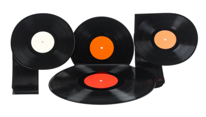 Vinyl records arranged in a dynamic "POP" design, isolated on black