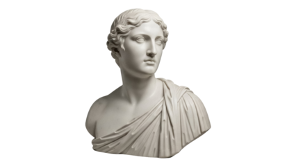 Elegant female bust statue isolated on transparent background, classical sculpture in PNG format for art and design projects