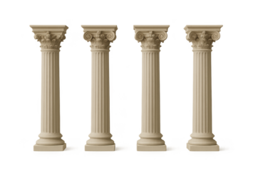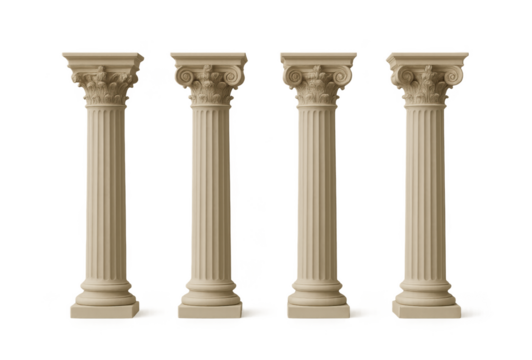 Pedestals isolated on white, transparent. Four pillars columns ancient Greek architecture
