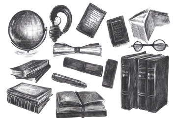 Collection of school supplies and educational items on a black background