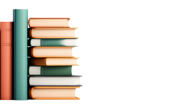 stack of colorful books and tall green book stand upright, symbolizing knowledge and learning. arrangement is neat and inviting, perfect for study or library setting