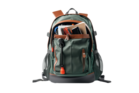 Backpack Filled With Books and Items. On a White or Clear Surface PNG Transparent Background.