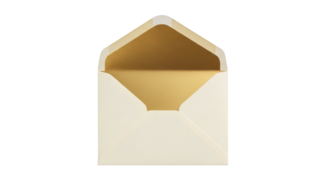Isolated open envelope invitation with gold interior for event, special occasion, celebration