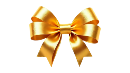 Luxurious Golden Satin Bow with Ribbon on Transparent Background - Perfect for Elegant Gift Wrapping, Holiday Celebrations, and Special Event Decorations. PNG