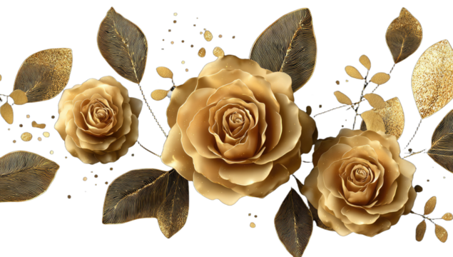 Gilded roses and dark leaves create an opulent decorative border