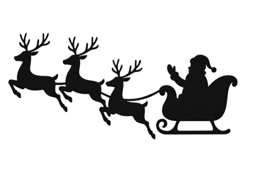 Santa claus sleigh reindeer flying christmas eve holiday on transparent background