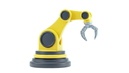 Robotic arm with transparent background holding red gear