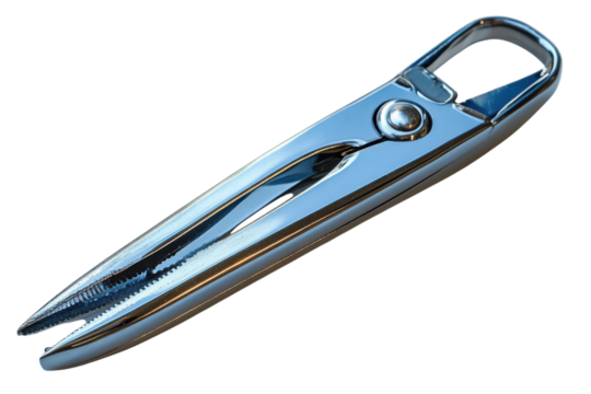 Precision tool with serrated stainless steel claws for gripping and cutting isolated on a transparent background