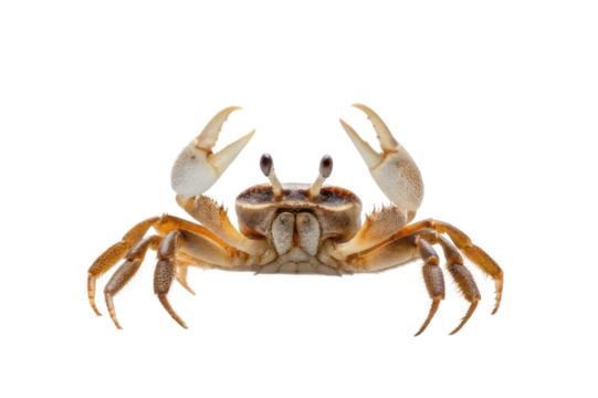 Crab in a striking pose showcasing its claws and features, ideal for marine biology or coastal education materials