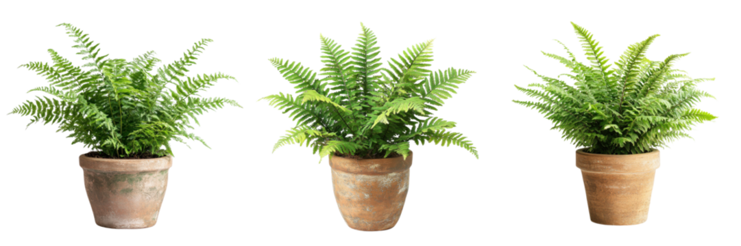 Terracotta pots with soil and seedlings isolated on transparency background