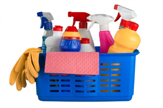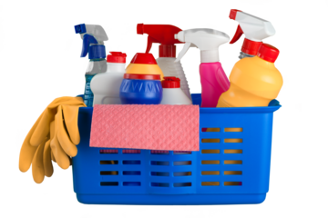 Two cleaning brushes held by gloved hands isolated on a white background.  PNG transparent.