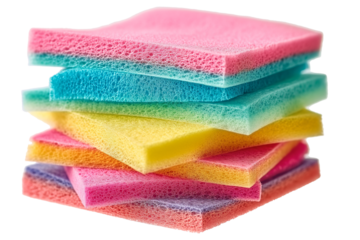 Stack of kitchen colourful sponge napkins for quick cleaning, isolated on transparent
