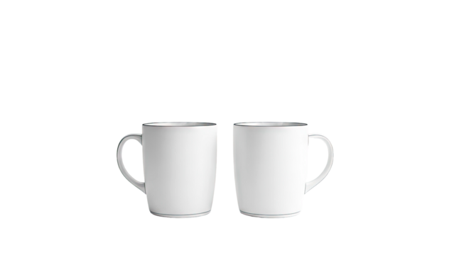 Ceramic Mugs: An artistic studio shot captures the elegance and simplicity of two ceramic mugs, showcasing their minimalist design.