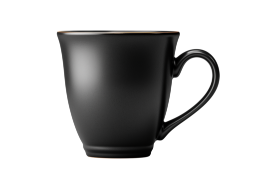 Black Ceramic Coffee Mug with Matte Finish, Simple Design Isolated on a Transparent Background