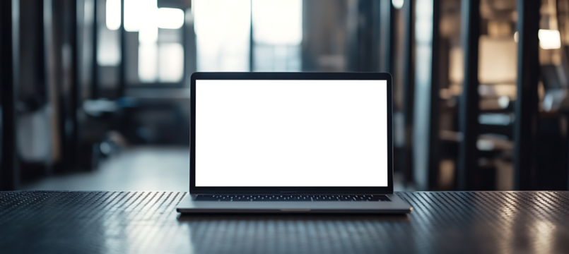 Realistic Office Scene With Laptop on Table and Editable PNG Screen for Design Presentation and Branding Concepts