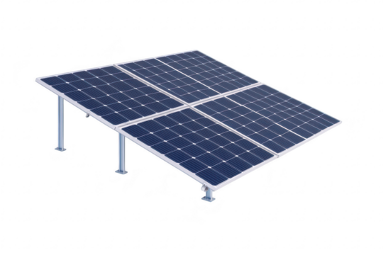 A green landscape with solar panels and wind turbines, symbolizing renewable energy and sustainability, isolated on a transparent background