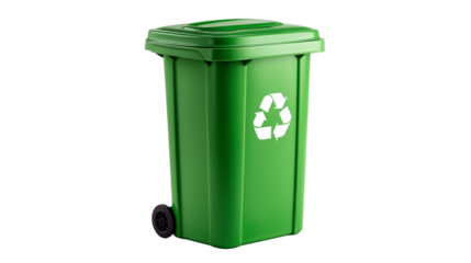 Green Recycling Bin 3D Render with Recycle Symbol, Eco Friendly Waste Container Isolated on Transparent Background