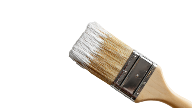 Pristine paintbrush featuring wooden handle, metal ferrule, positioned against transparent backdrop, waiting for creative artistic endeavors
