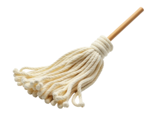 Woman gently touching a small round natural cleaning brush with wooden handle, isolated on transparent background, perfect for hygiene and cleaning concepts