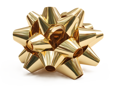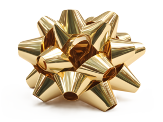 Golden ribbon bow on white background isolated on a transparent background gift decoration