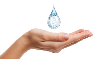 A single splash of water on a white surface, perfect for use in images about cleanliness, beauty, or science experiments