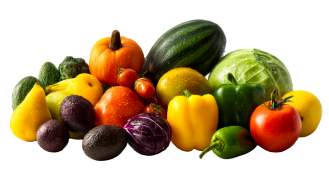 Colorful fruits and veggies on a clear background