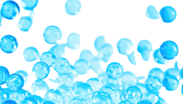 Clear bottle with blue liquid and bubbles isolated on a transparent background
