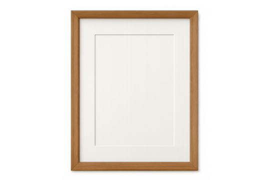 In this close-up mockup, a wood frame is elegantly displayed on a table against a clear background, offering a refined presentation for your designs or artwork.