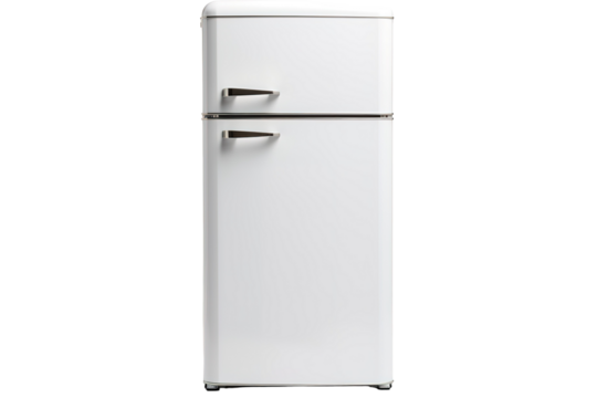 A Pristine White Retro Refrigerator Stands Ready For Culinary Adventures on a White or Clear Surface PNG Transparent Background