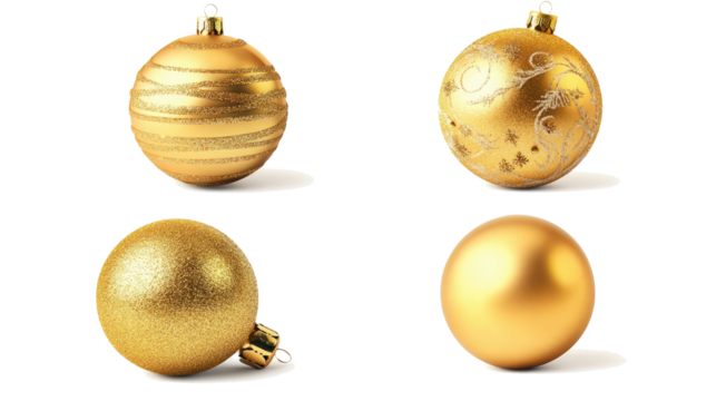Gold Glitter Xmas Balls on Clear Backdrop Generative AI