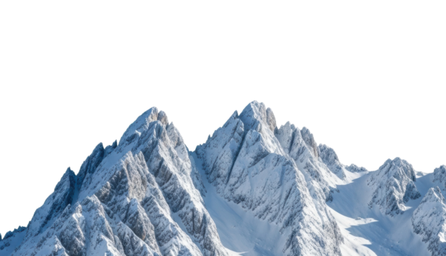 Snow-capped peaks mountain range landscape clear sky aerial view isolated on transparent background