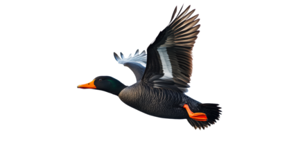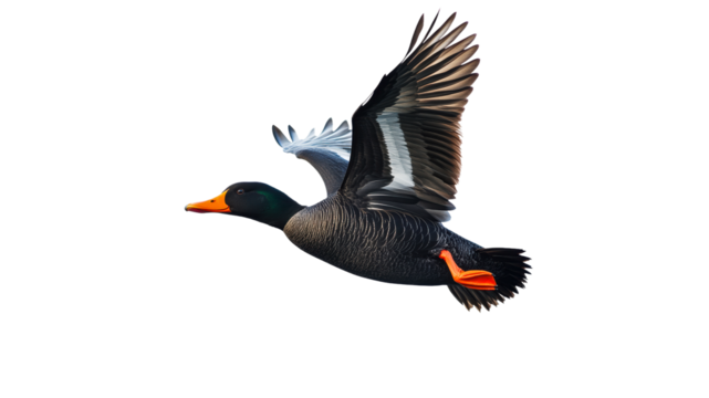 Duck flying gracefully in a clear sky