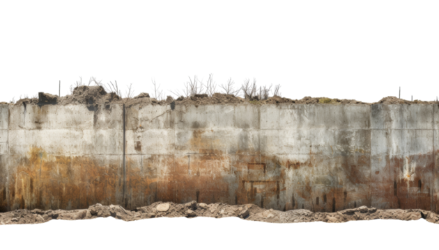 old wall concrete isolated on transparent background cutout