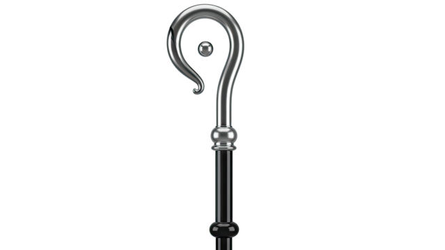 Bishop in ornate vestments holding crosier and book, isolated on a transparent background