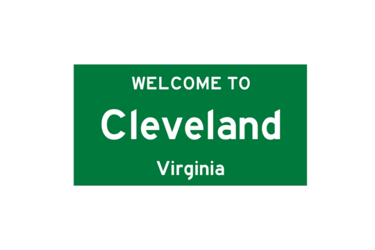 Cleveland, Virginia, USA. City limit sign on transparent background.